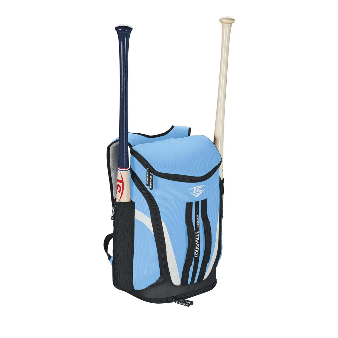 Hit the road with the Louisville Slugger Select Stick Pack, the perfect bag for players from youth baseball to adult slowpitch softball. Available in a variety of colors and with a removable customization area, the Select Stick Pack comes with a main compartment for gear, and two molded neoprene bat sleeves. It has a locker style main opening, as well as a waterproof shoe compartment for convenient storage.